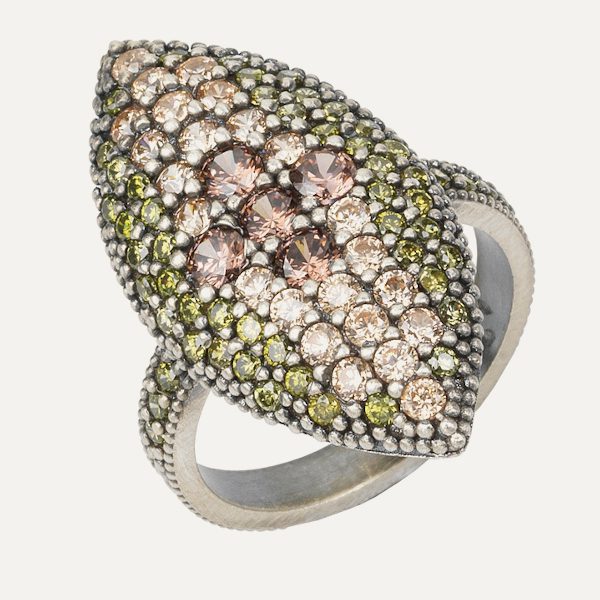 925 sterling silver ring, quartz and zirconia, in four color combinations to choose from.