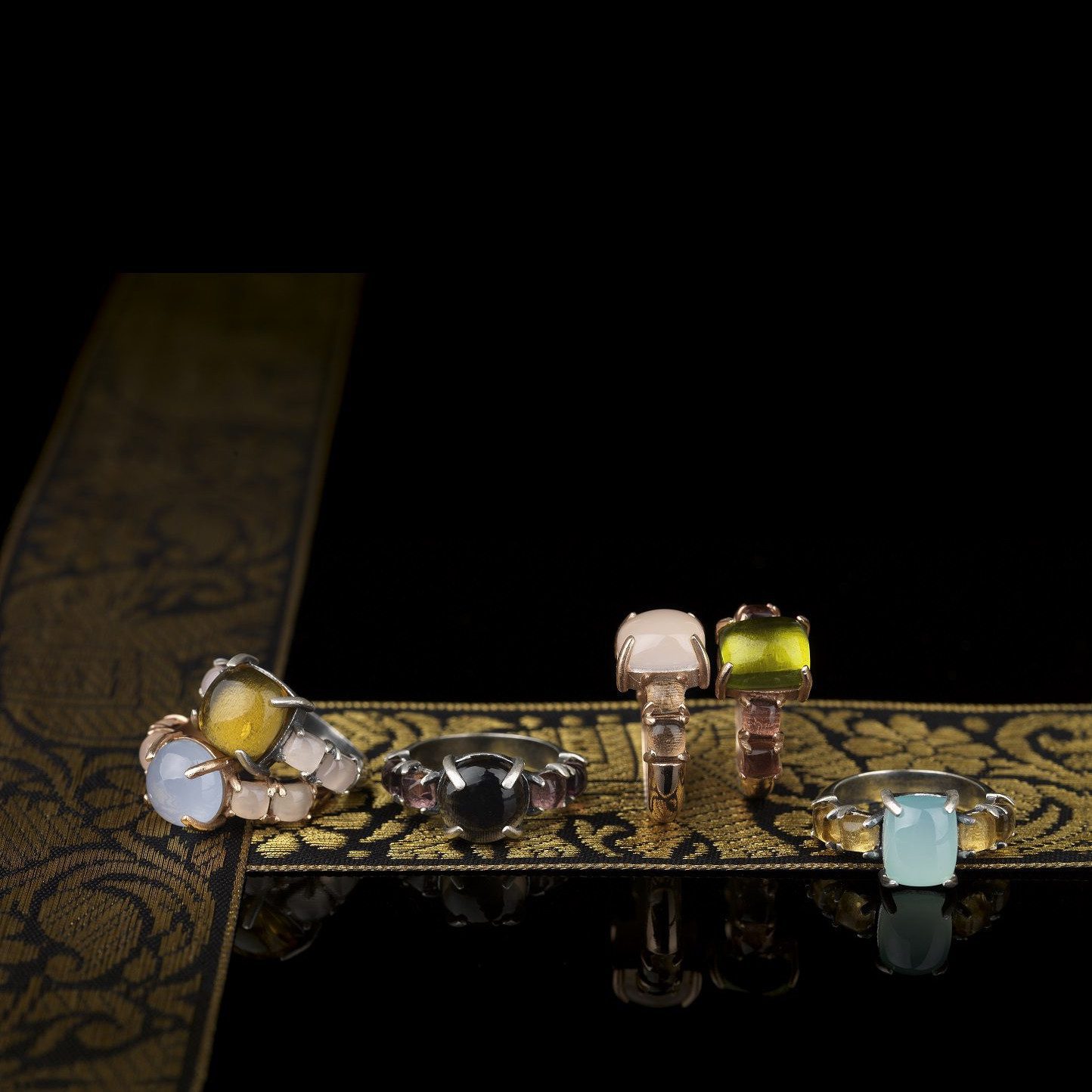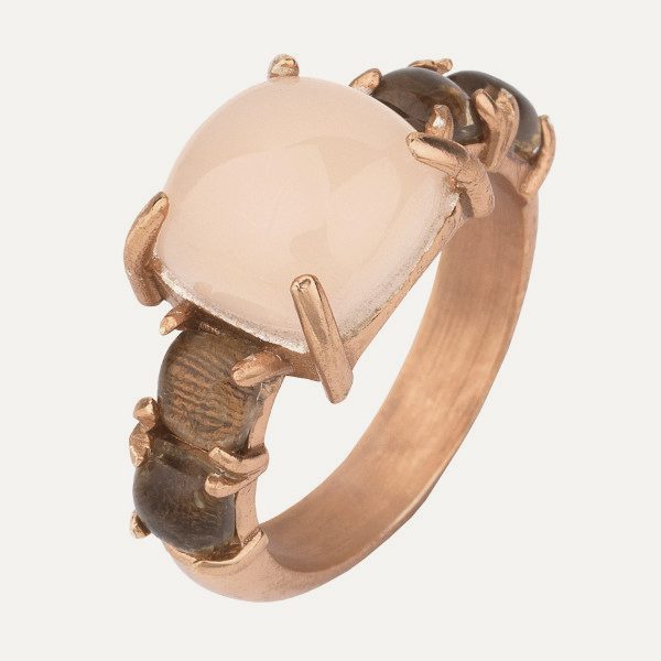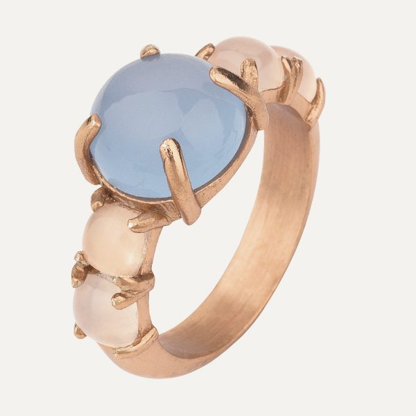 925 sterling silver ring with rose gold plating, blue chalcedony, rose quartz and zirconia.