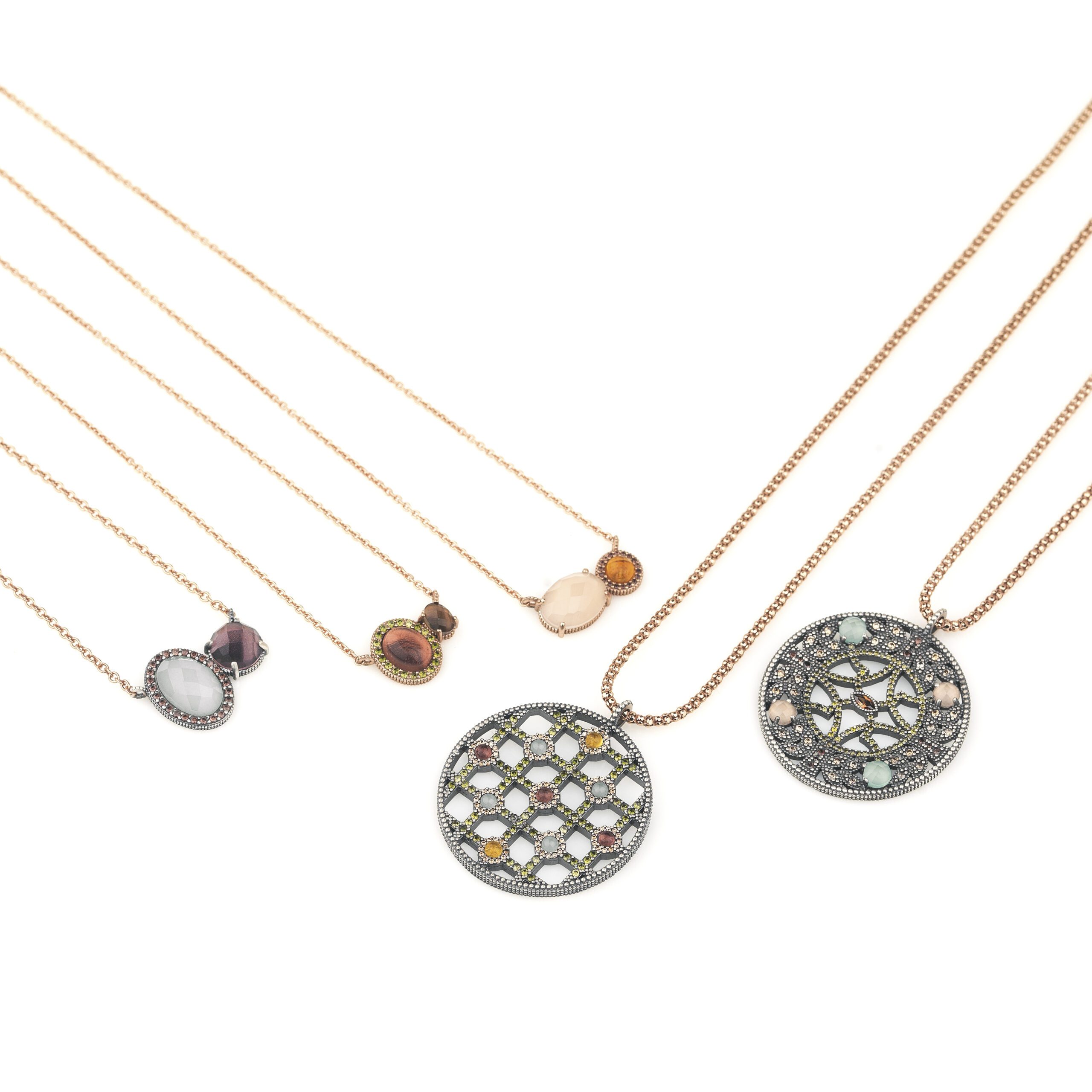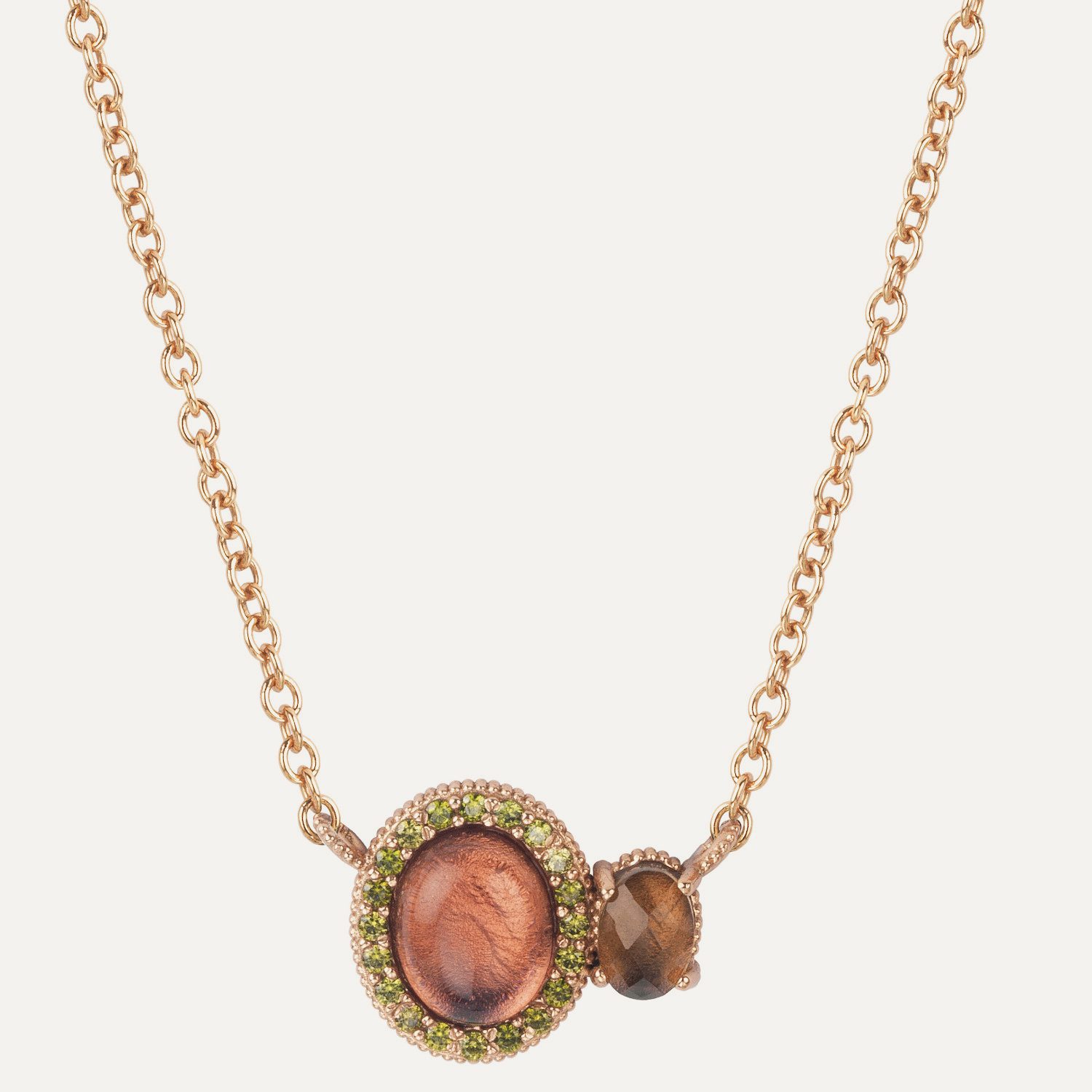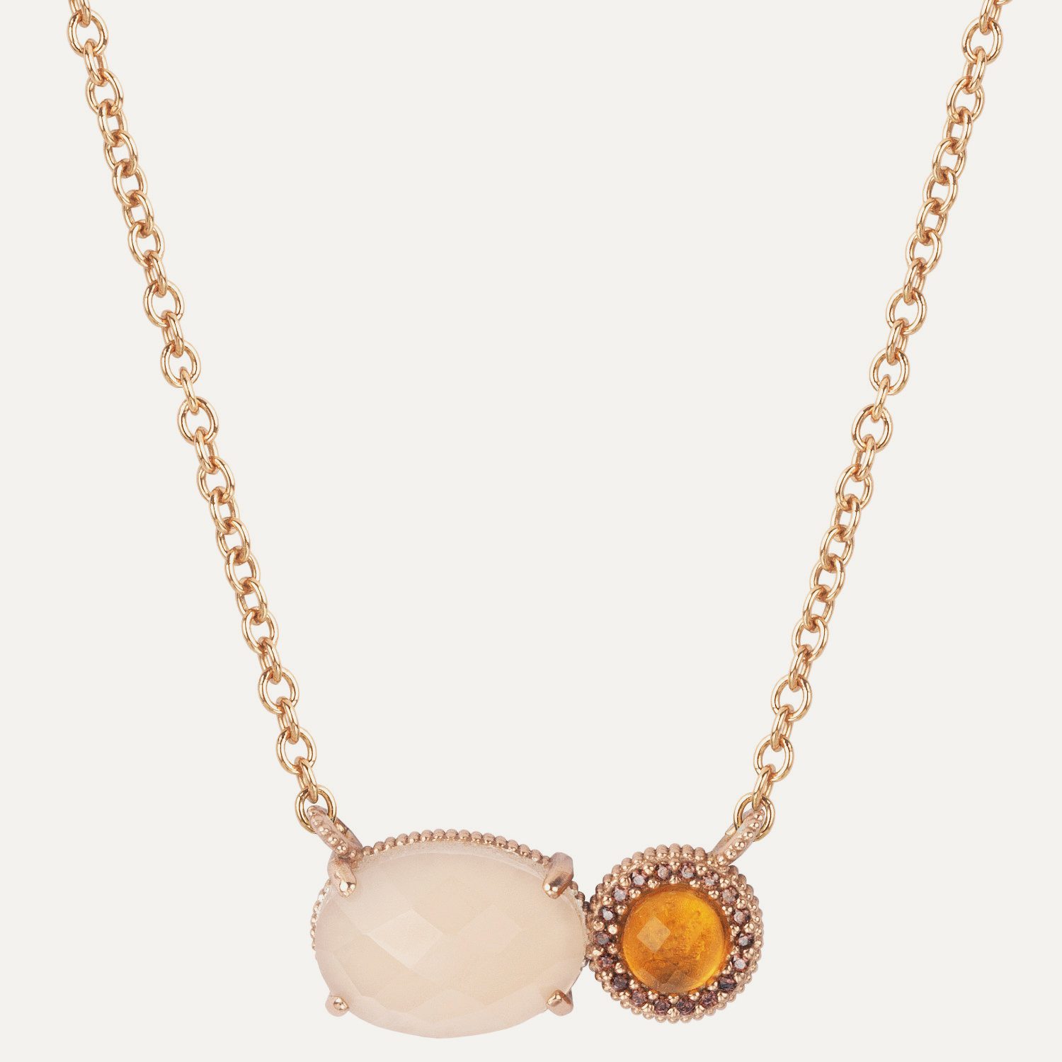 Pendant made of 925 sterling silver with 24kt rose gold plating, rose quartz, citrine and zirconia.