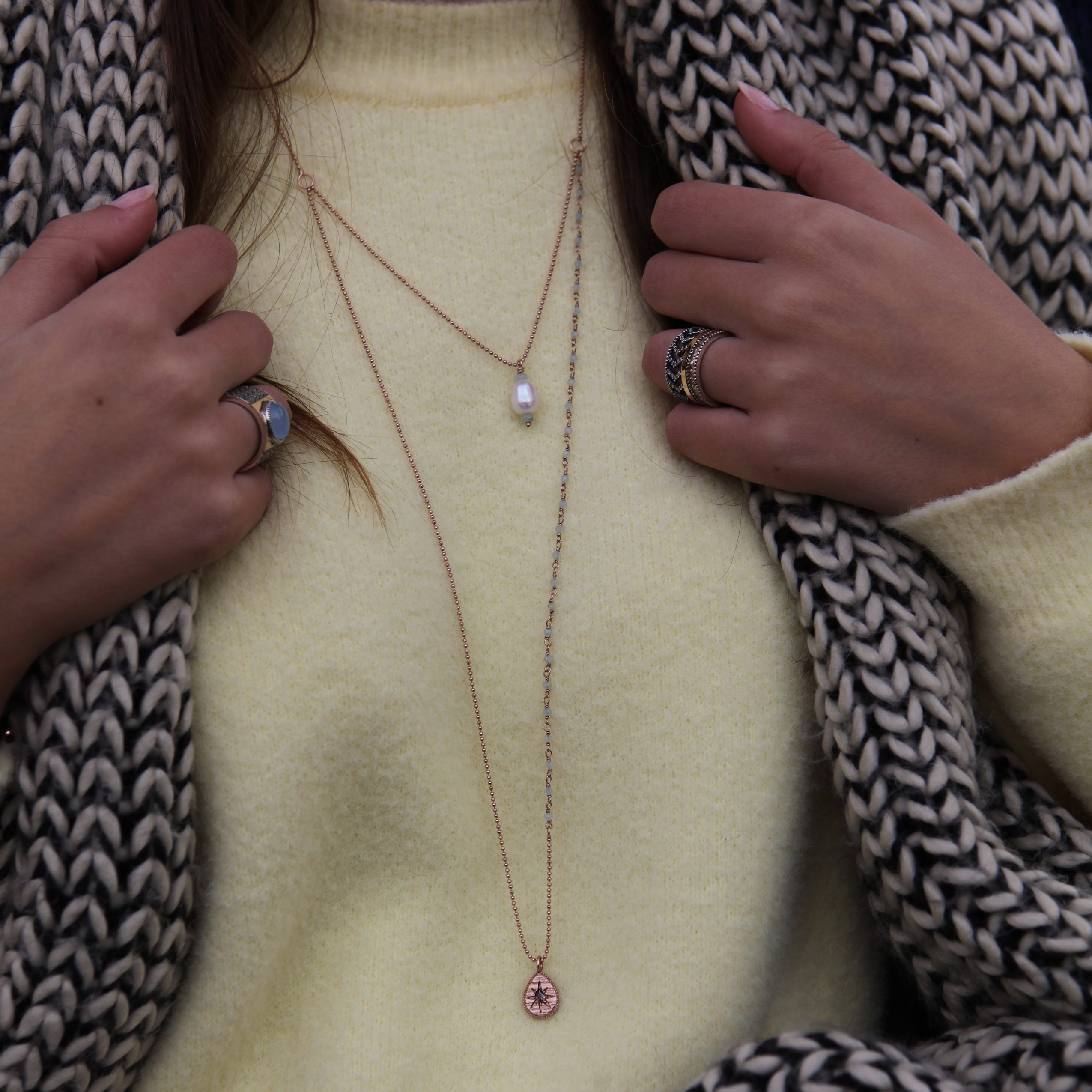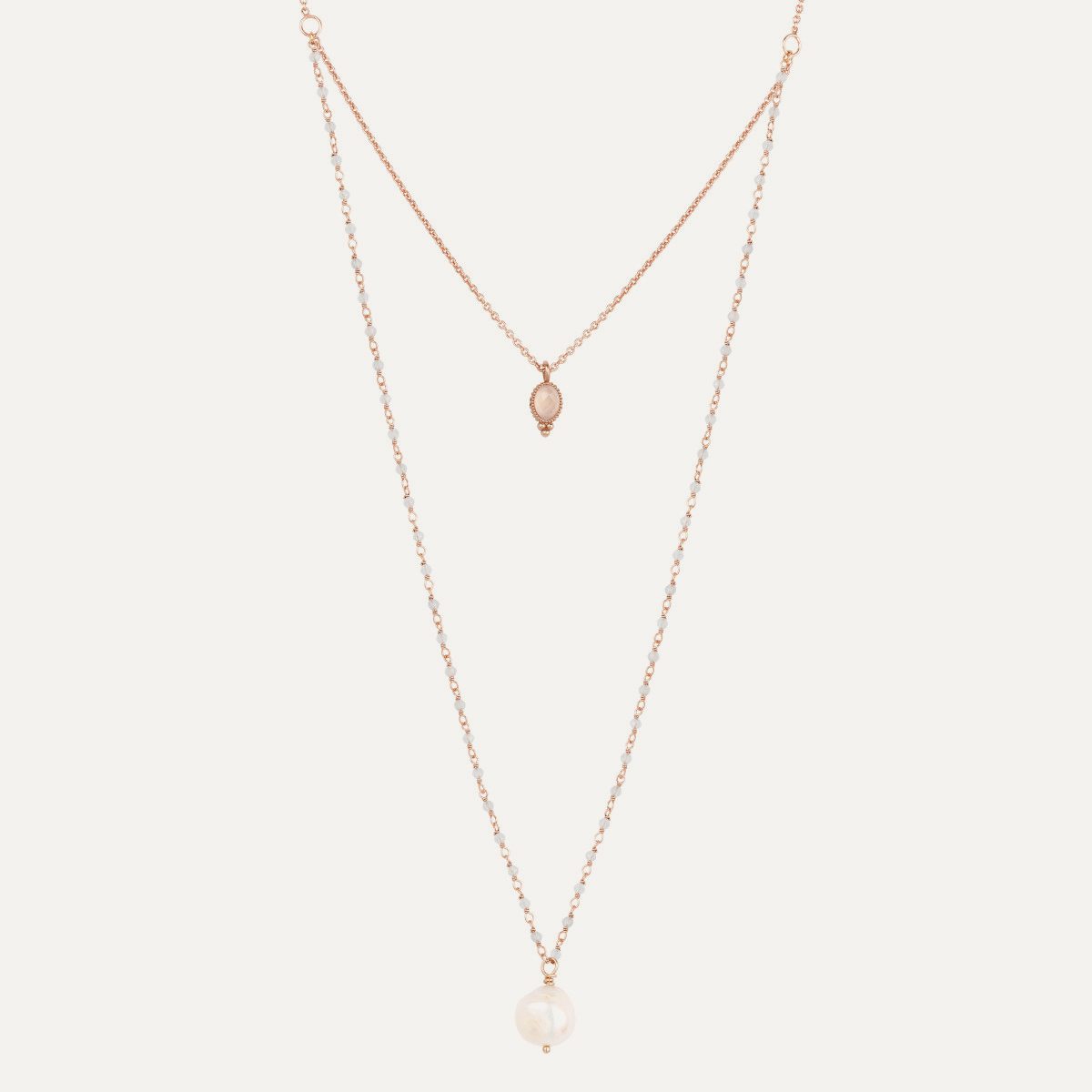 Pendant in sterling silver with 24kt rose gold plating, baroque pearl and zircons