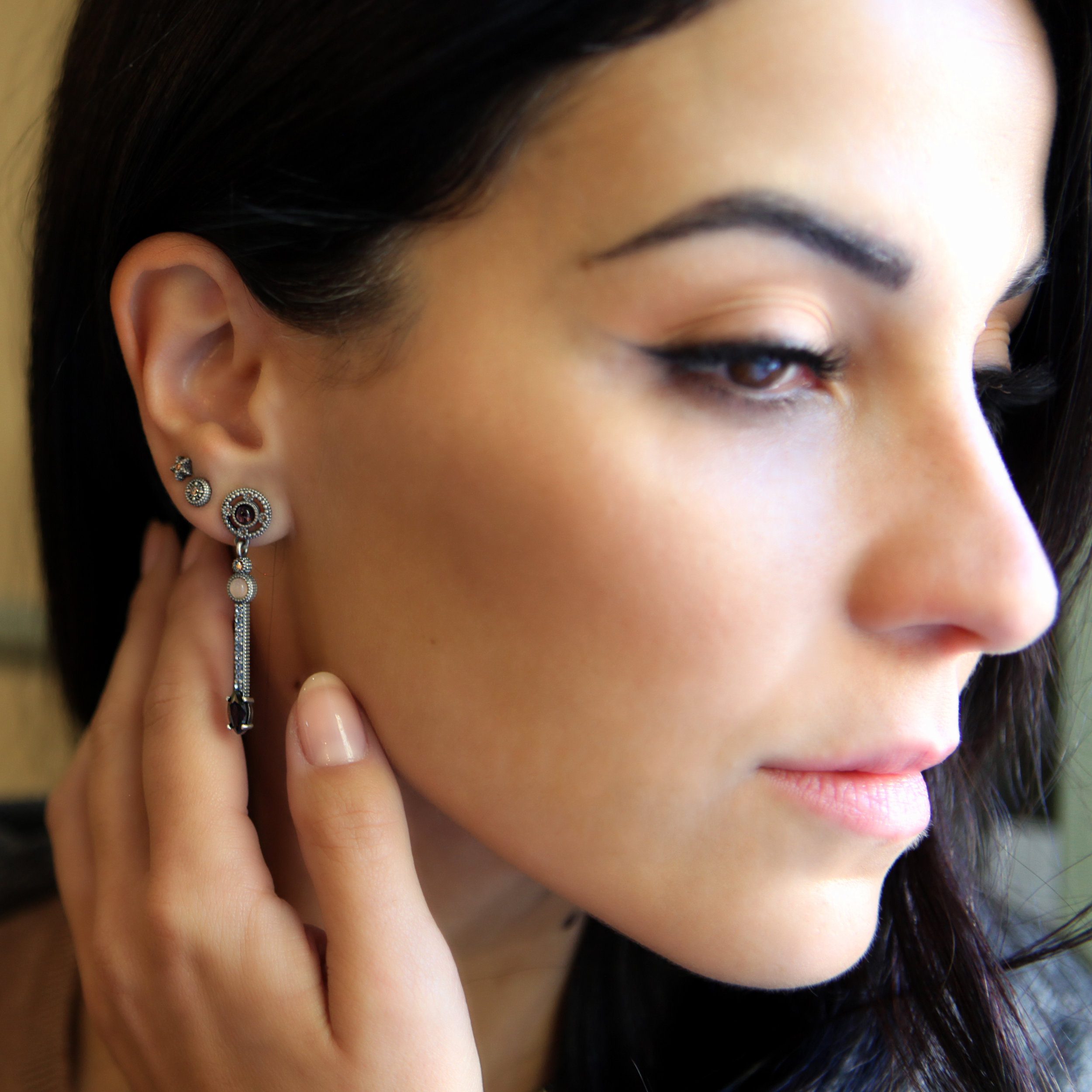 925 sterling silver earrings with antique finish, pink tourmaline, rose quartz and zirconia.