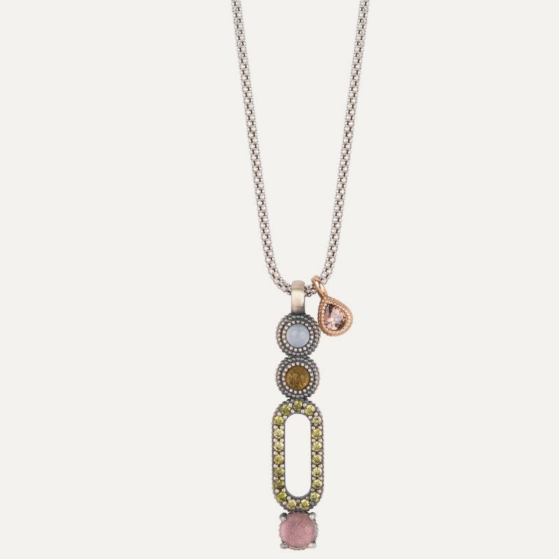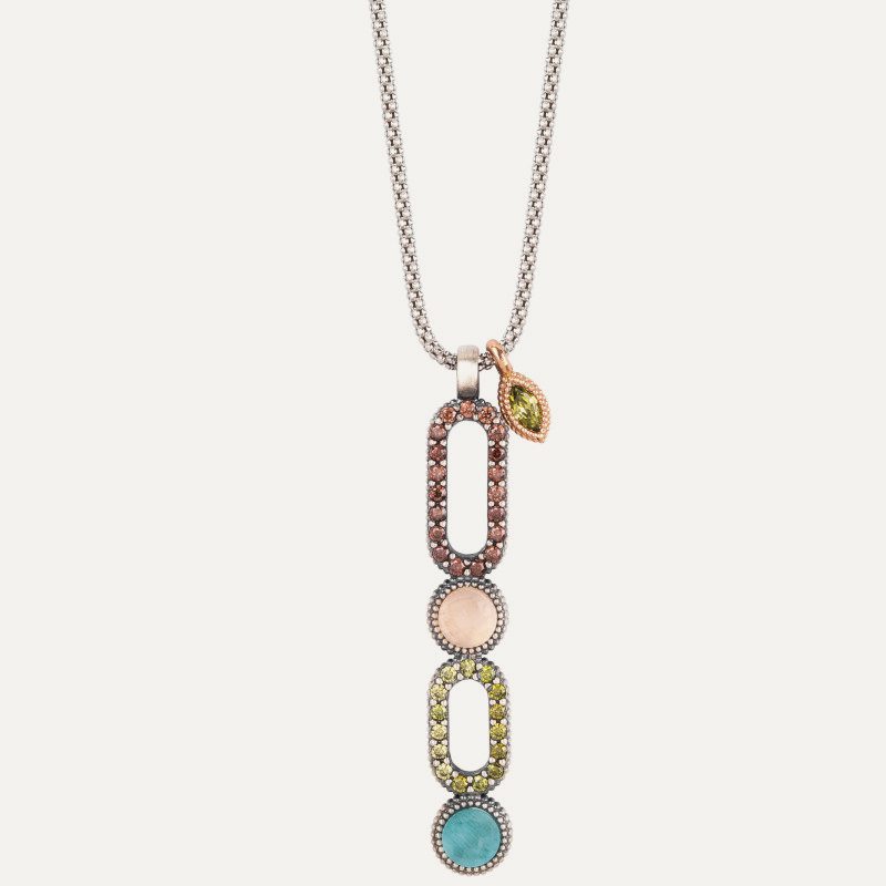Pendant made of sterling silver with 24 kt rose gold plating, chalcedony, rose quartz and zircons
