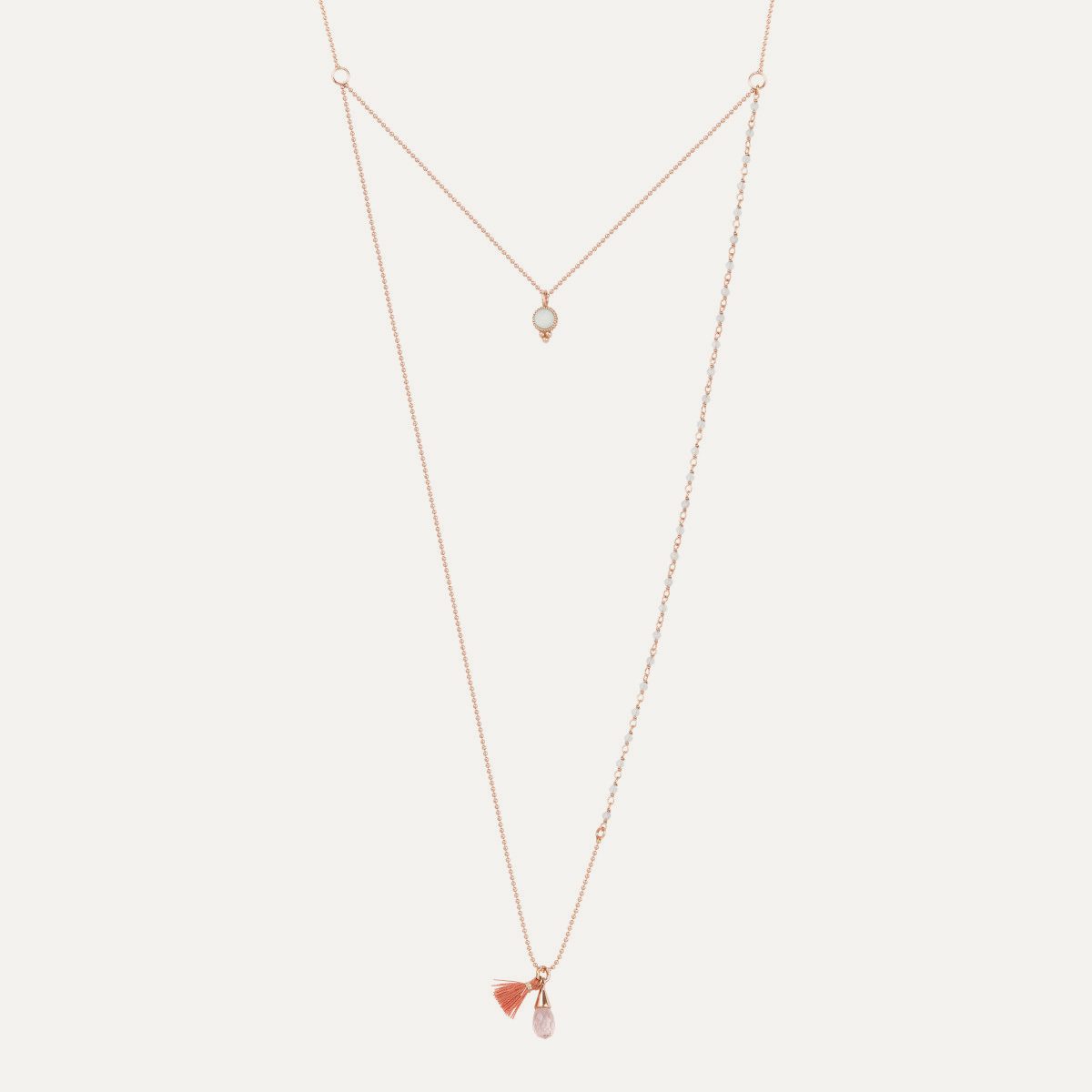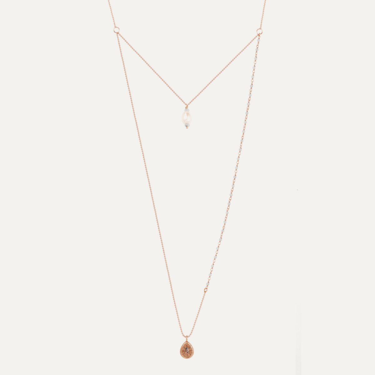 Pendant in sterling silver with 24kt rose gold plating, rose quartz and zircons