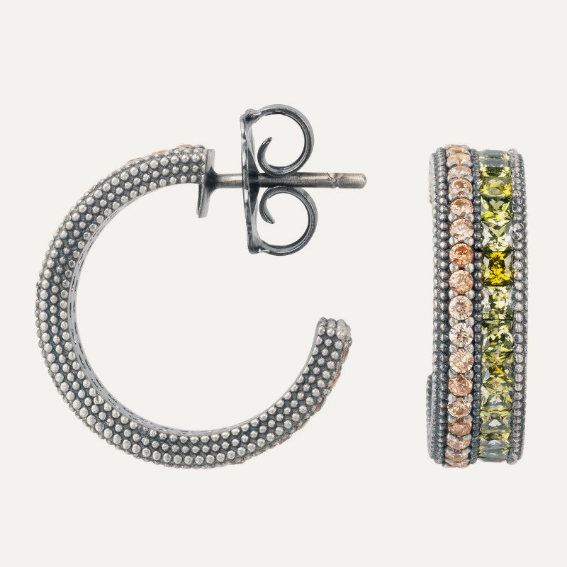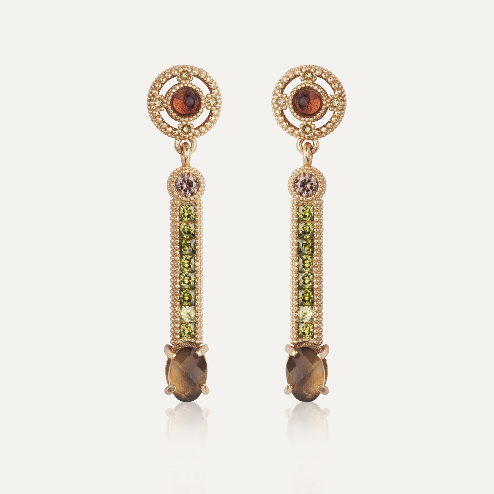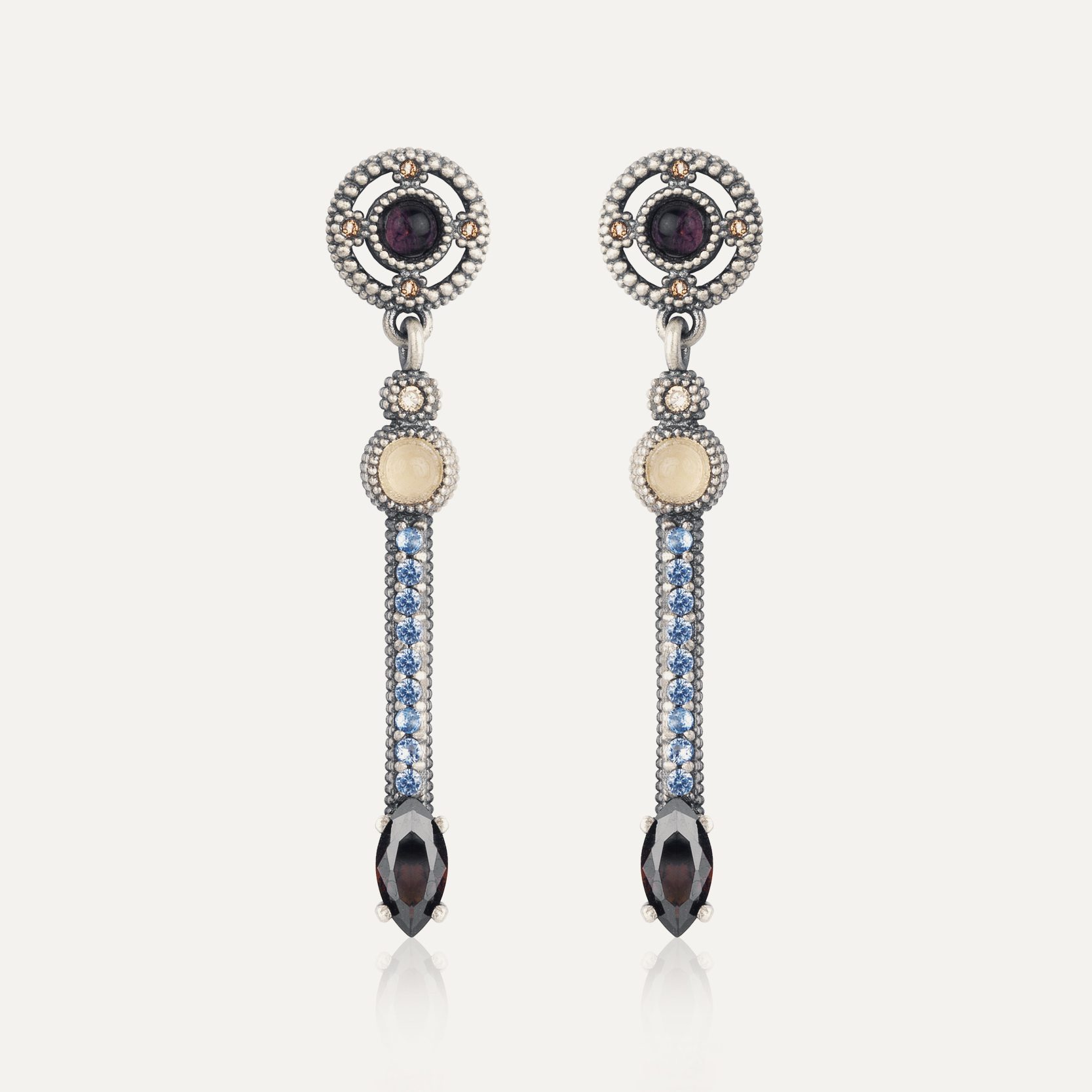 925 sterling silver earrings with antique finish, chalcedony, smoky quartz and zirconia.