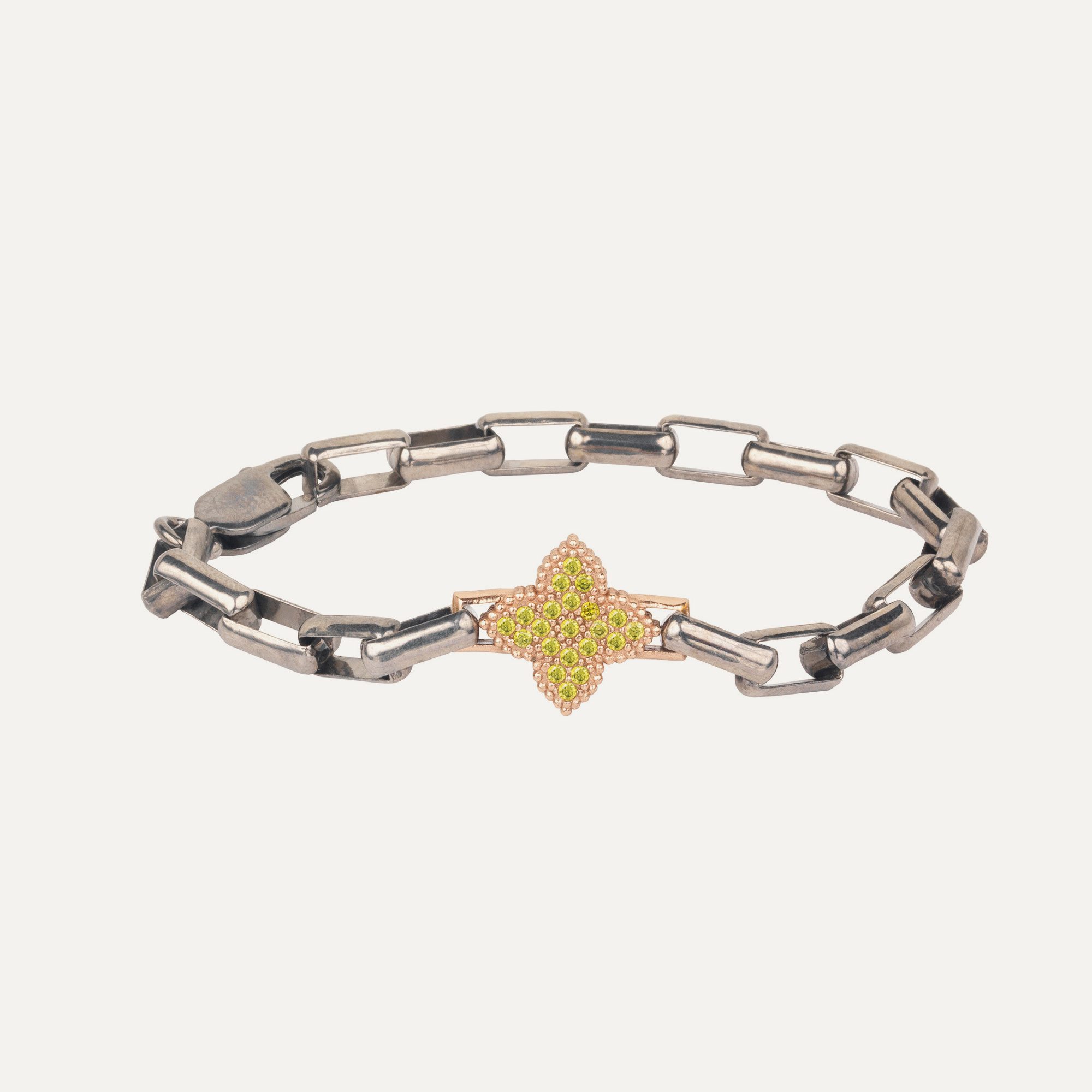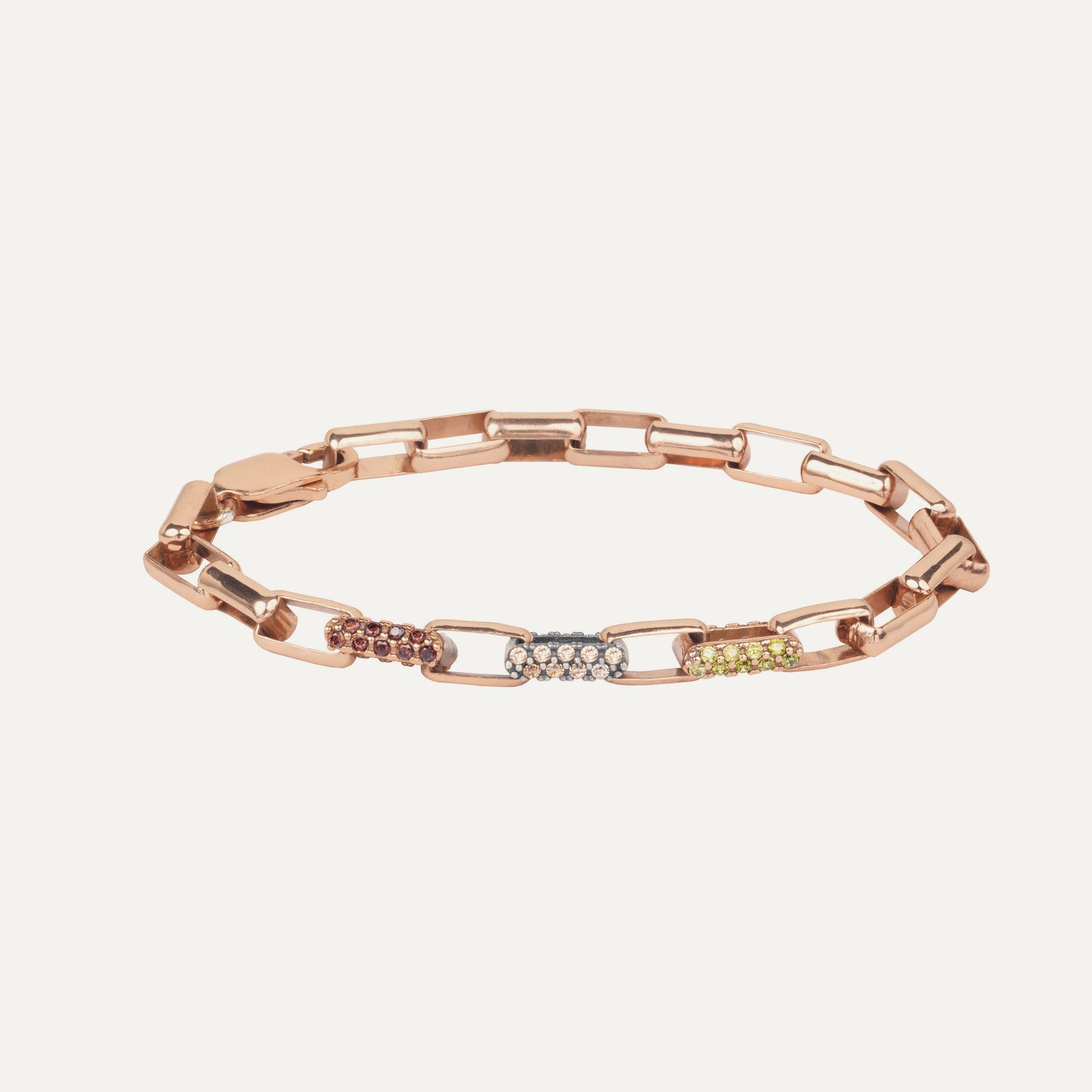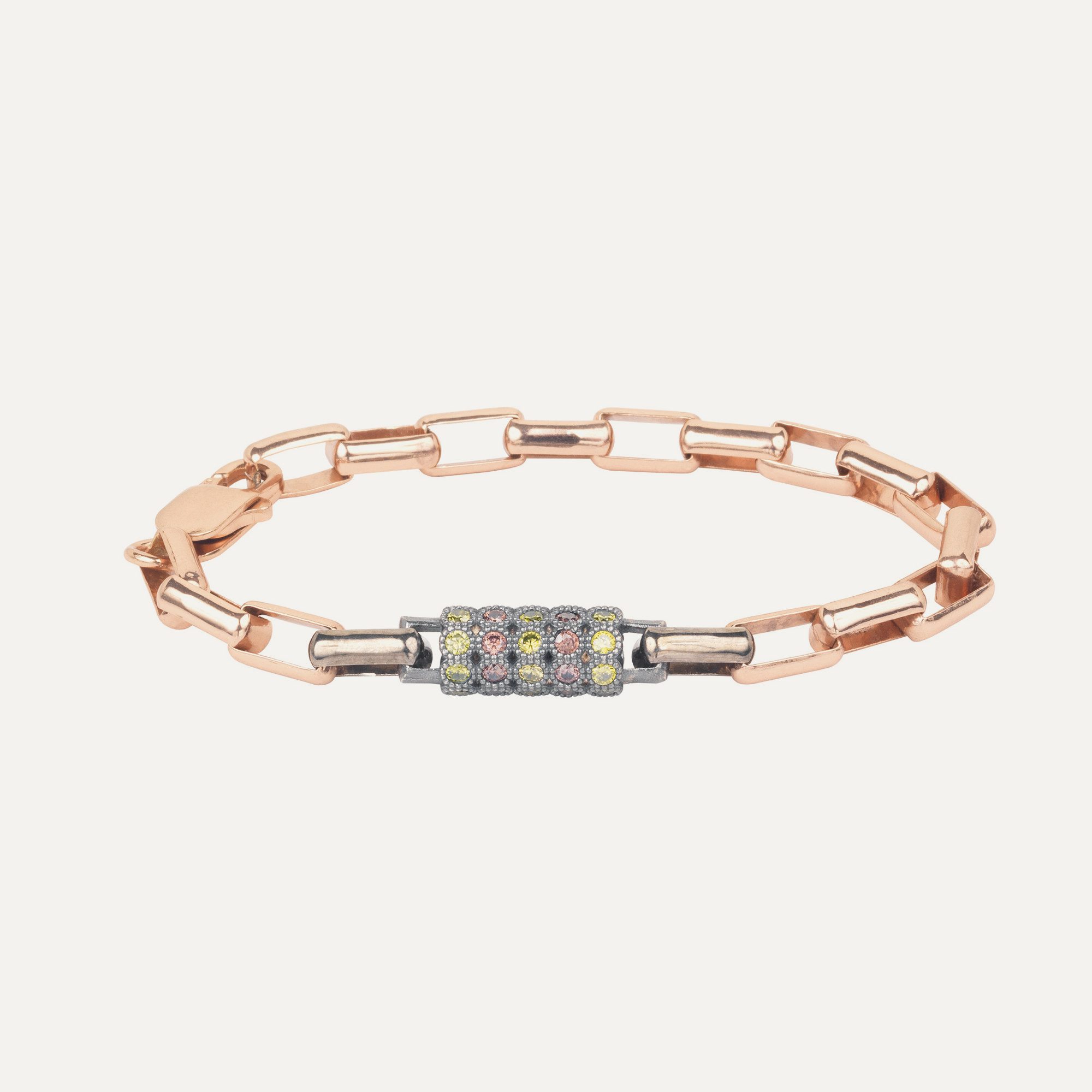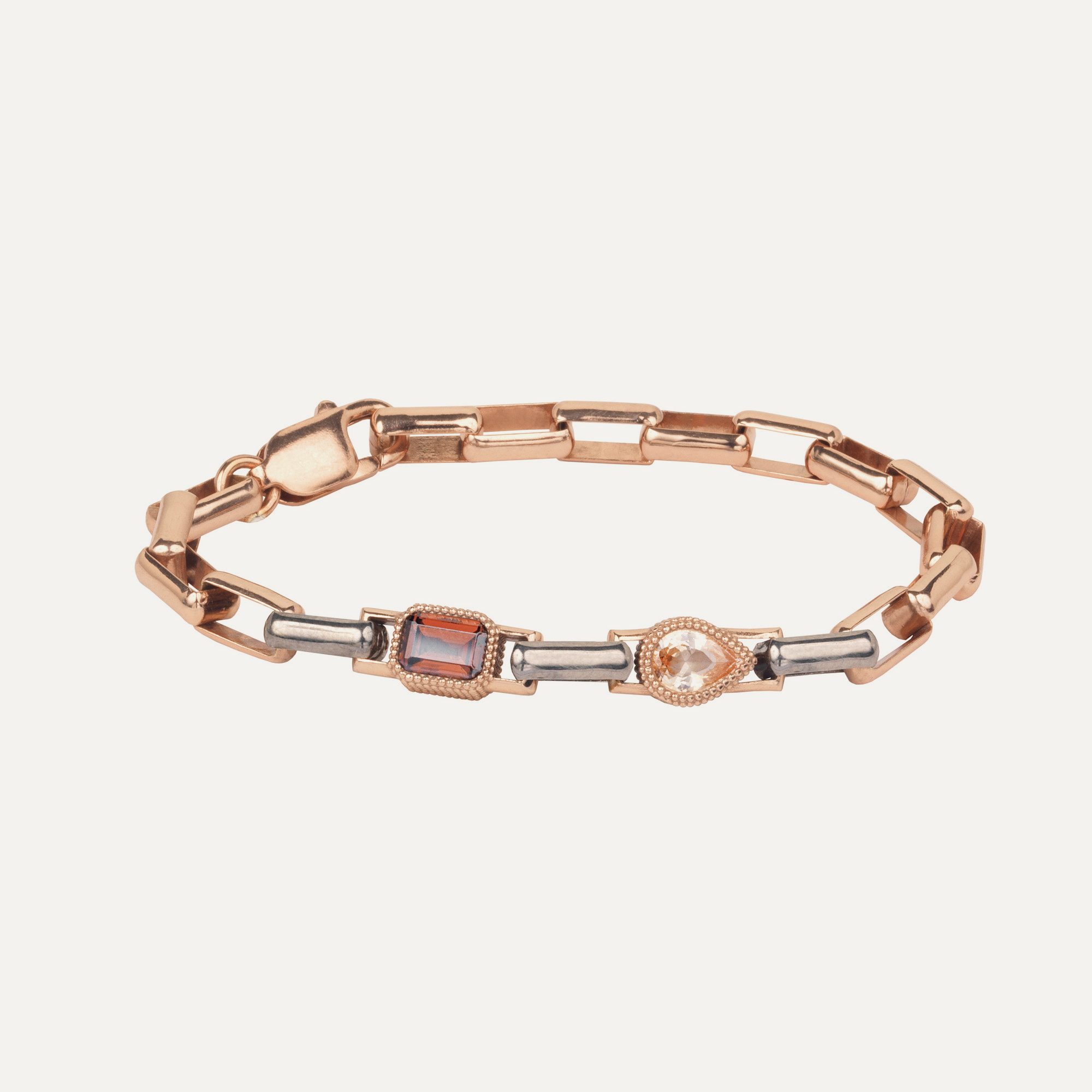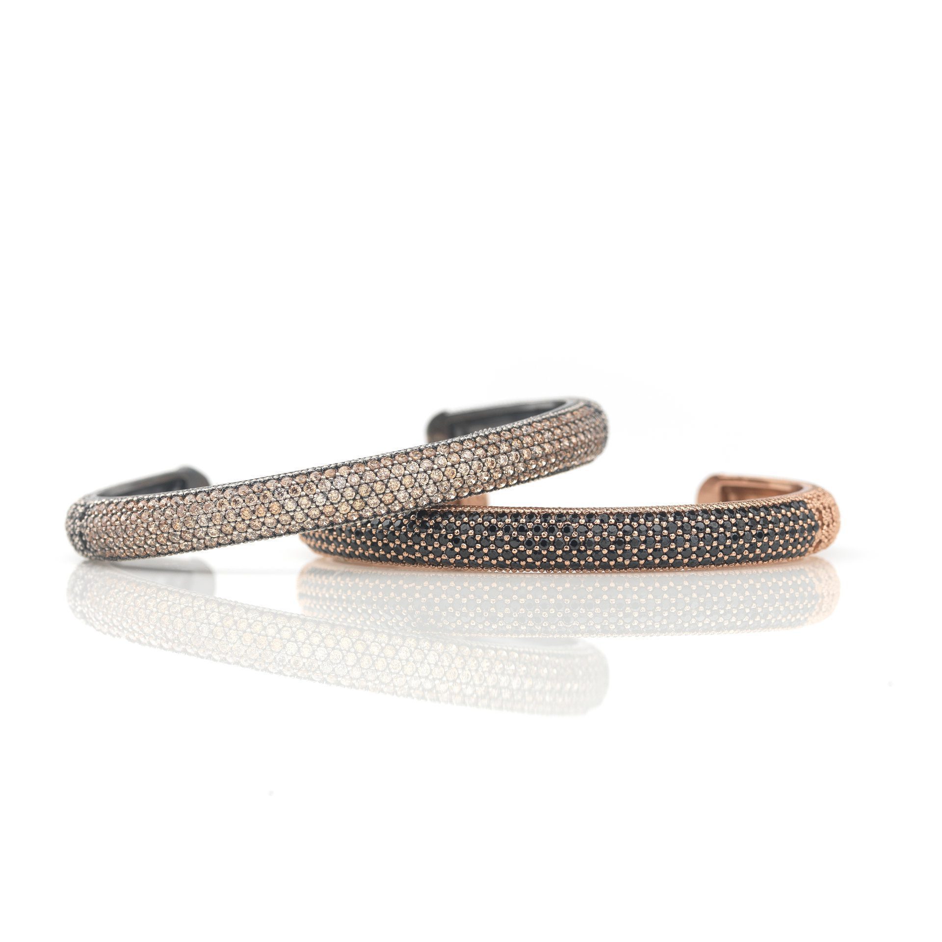Sterling silver bracelet with ruthenium finish, 24kt rose gold plating and zircons.
