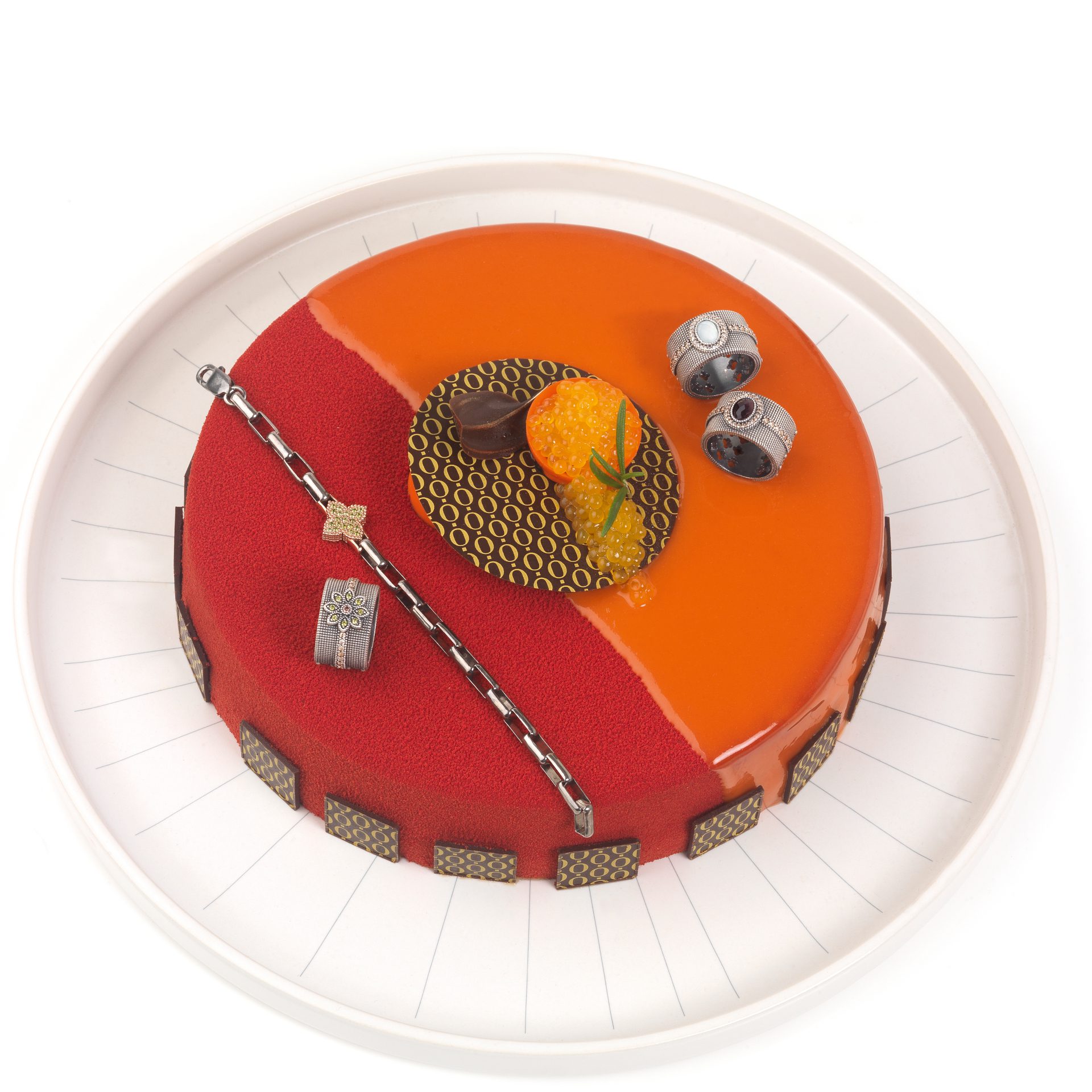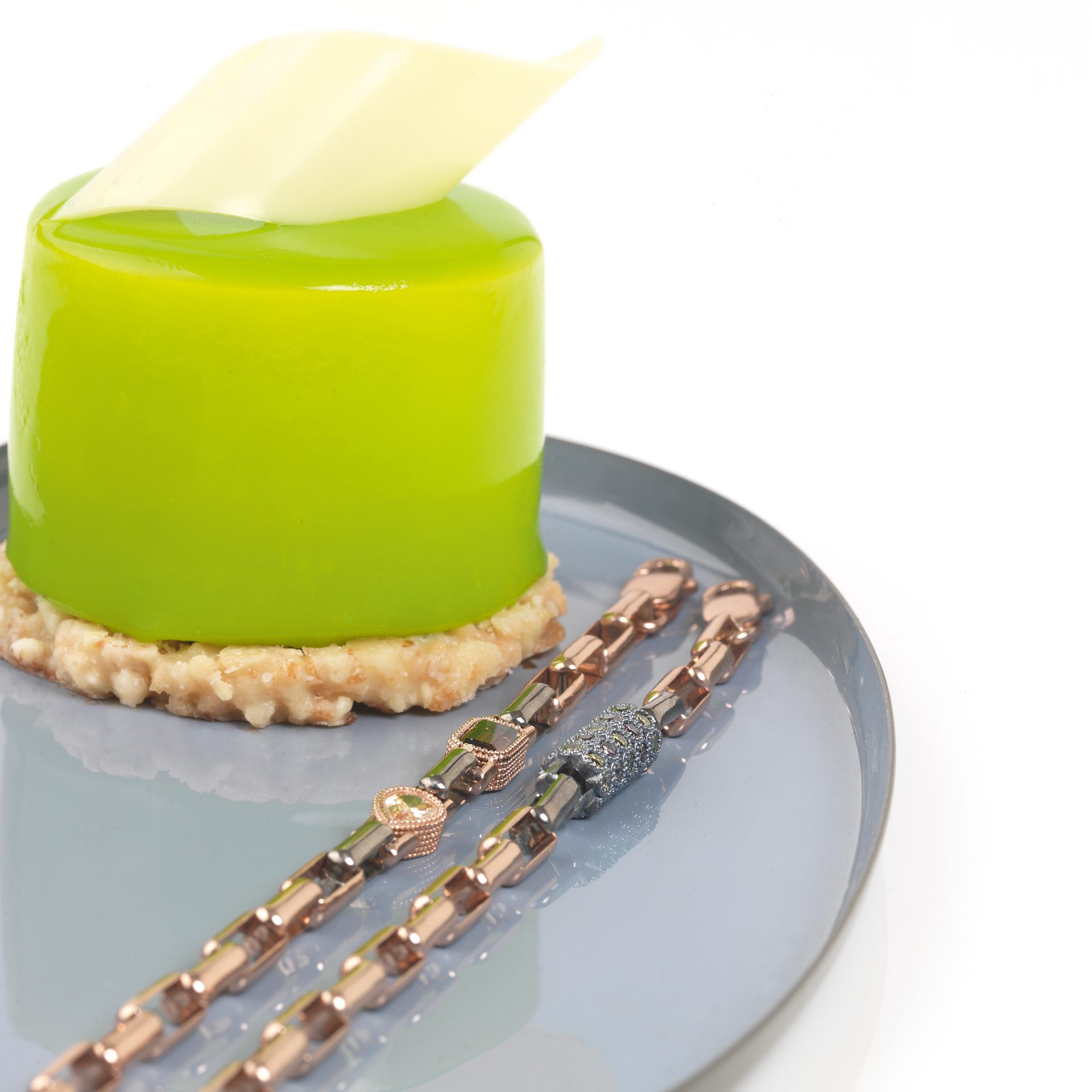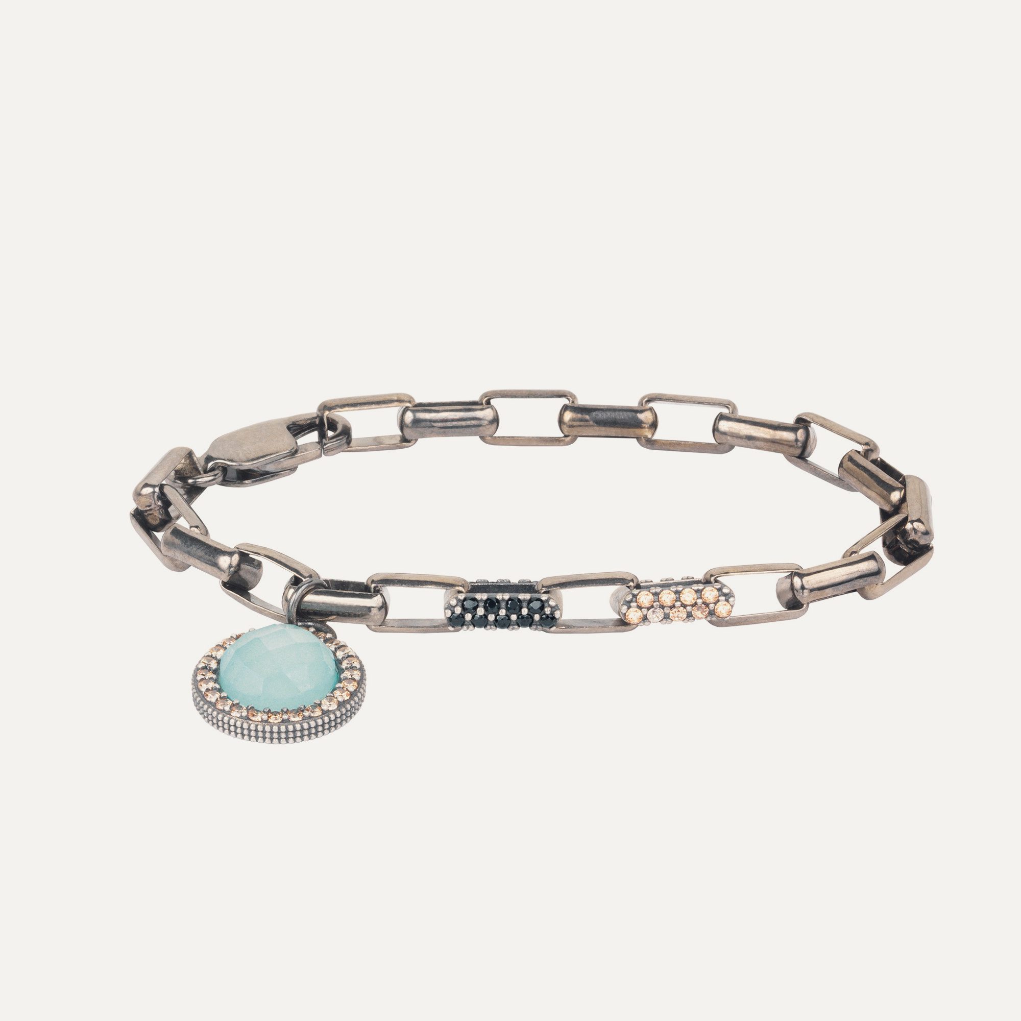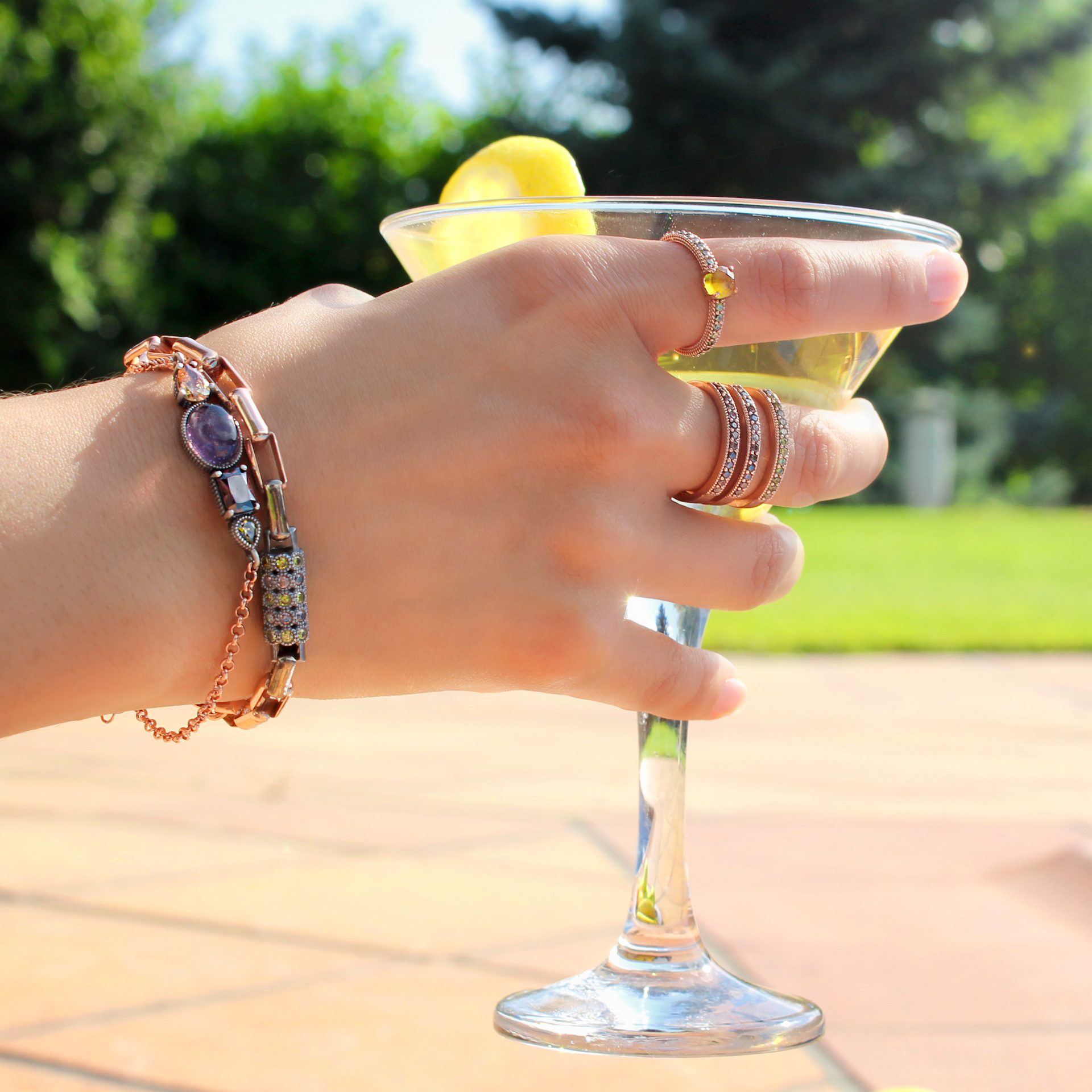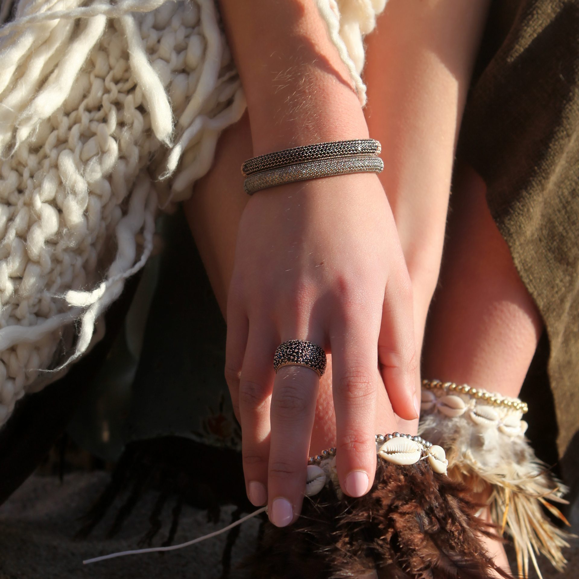 Sterling silver bracelet with ruthenium finish, 24kt rose gold plating and zircons.