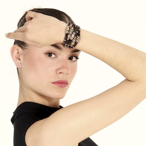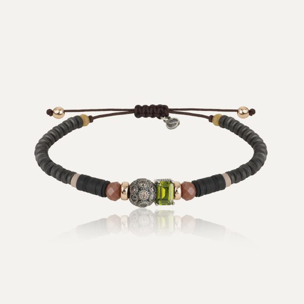 925 sterling silver bracelet with 9 kt gold, glass beads, hematite, rubber and nylon.