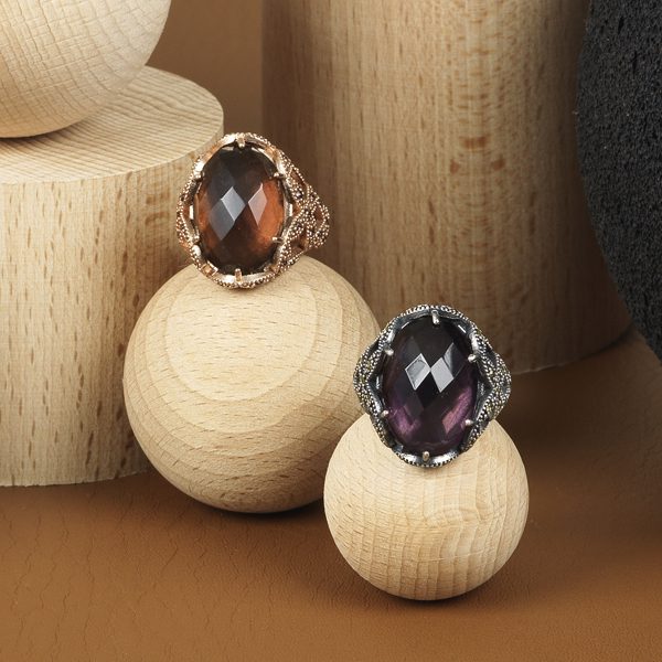 925 sterling silver ring with quartz and zirconia, in three color combinations to choose from.